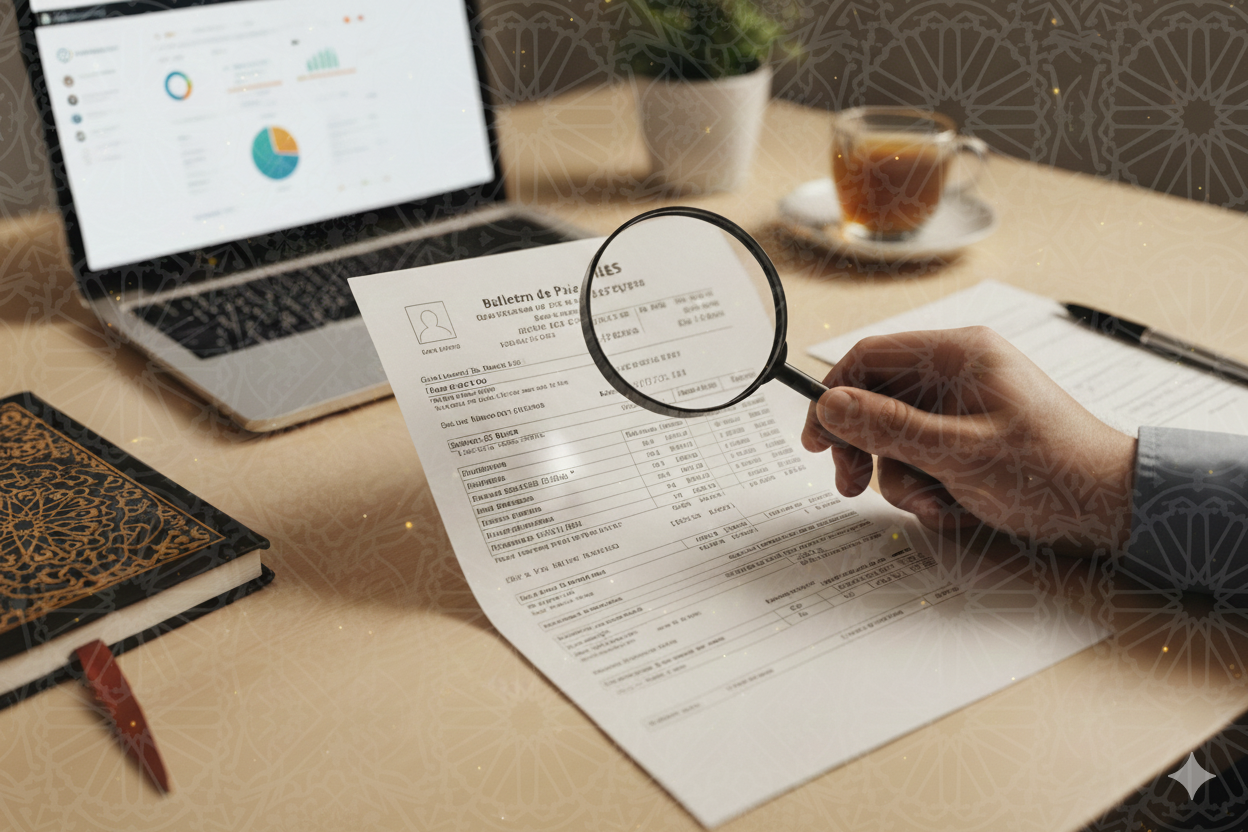 Nous analysons votre fiche de paie et vérifions les calculs : CNSS, AMO, IR, heures supplémentaires et droits appliqués.
